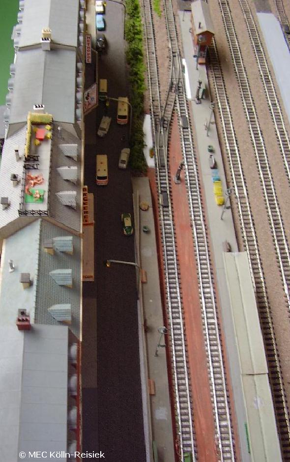 Dieser Bereich zeigt die Nebenstreckengleise sowei ein bischen Szenerie im Bahnhofsumfeld.