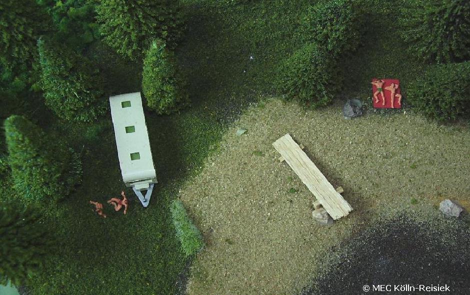 Mal eine Bahnhosübersicht. Von der Vorderkante, wo das Streu fehlt bis hinten, ungefähr da, wo die Bäume zu sehen sind, gehört zum Bahnhofsbereich.